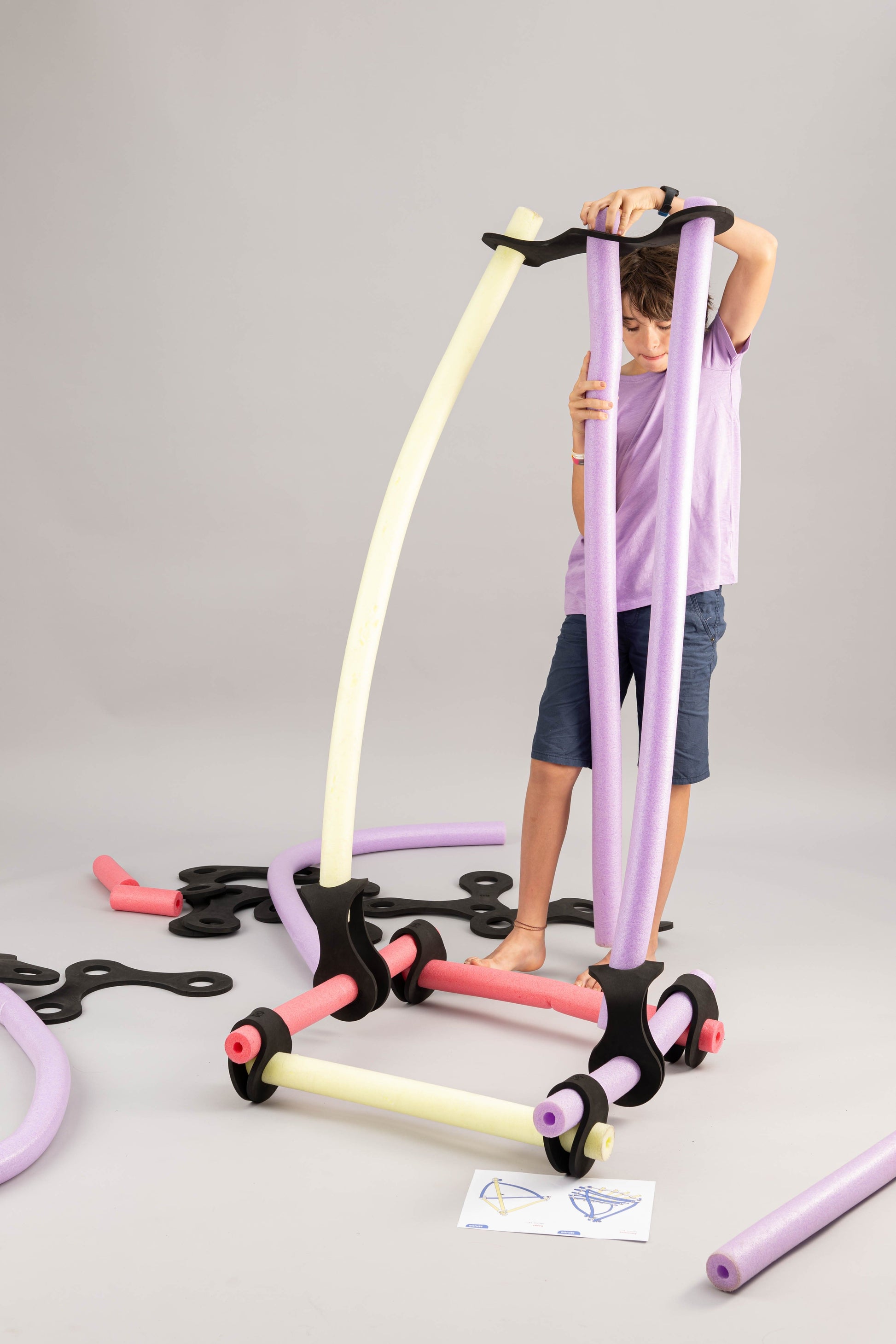 El PACK MAMUT es un juego de construcción a gran escala formado por piezas grandes, blandas, modulares y flexibles que transforman los famosos churros de piscina (no incluidos) para poder construir con ellos infinitas cosas
